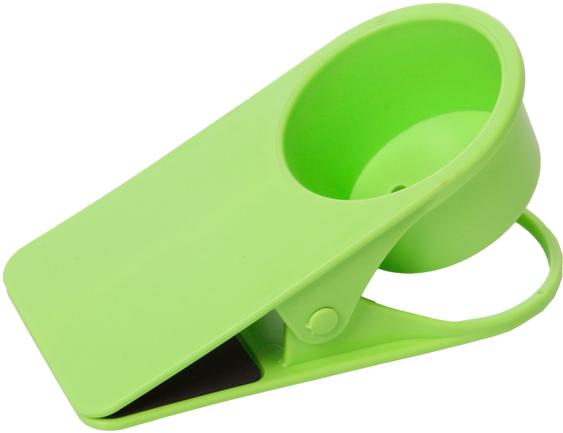 Pratico supporto portabevande realizzato in materiale plastico di ottima qualità. Costruito come un morsetto gigante, il Drinkmaster può essere fissato rapidamente a qualsiasi tavolo o a qualsiasi supporto piano. Le 2 pinze rivestite di materiale antisdrucciolo garantiscono un'ottima presa su quasi tutte le superfici.